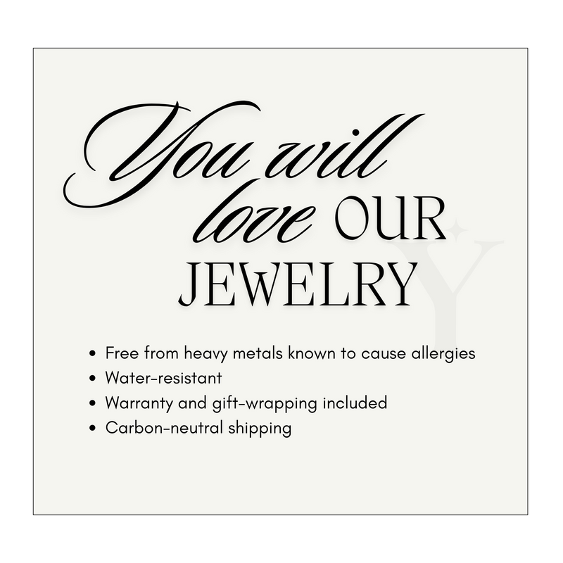 We believe that true beauty lies in the details. Each piece is meticulously produced by skilled manufacturers, ensuring unparalleled craftsmanship and attention to detail. Our jewelry is made with top-quality recycled metals such as stainless steel, titanium, sterling silver and/or 18k PVD gold. We stay away from lead, cadmium and nickel. No more green skin!